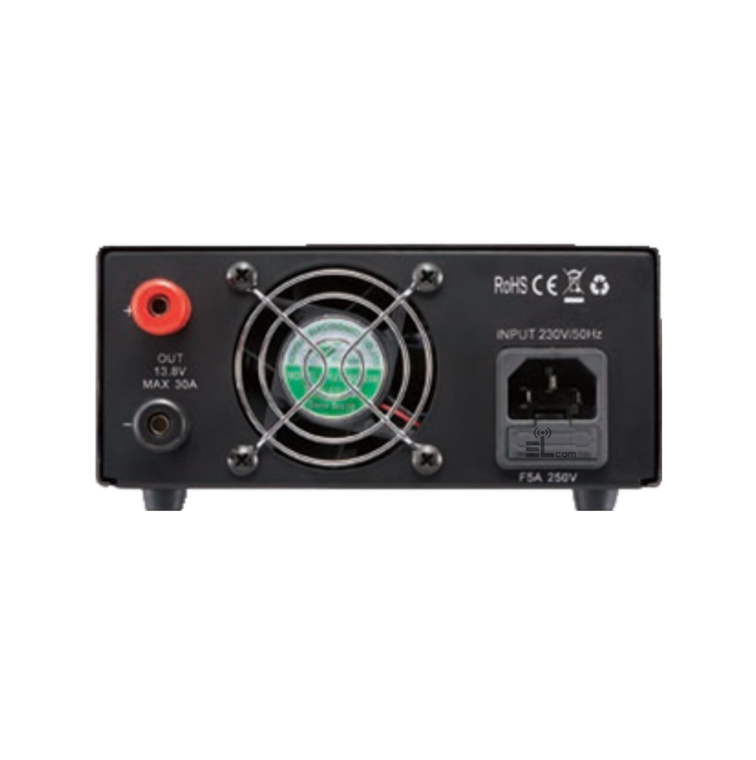 Nyaman bagi pengguna radio, Sirkuit Pengimbang Derau memindahkan derau switching yang tidak diinginkan ke frekuensi lain. Fitur lainnya termasuk Volt/Amp meter digital besar yang menyala, tiang pengikat panel belakang (puncak 30A/pasang), terminal cepat panel depan (puncak 5A/pasang, banana untuk E, kutub daya Anderson untuk T), penyesuaian tegangan (9-15V) atau tetap pada 13,8V, riak kurang dari 80mVp-p, dan perlindungan tiga sirkuit untuk hubung singkat, suhu berlebih, dan pembatasan arus.
